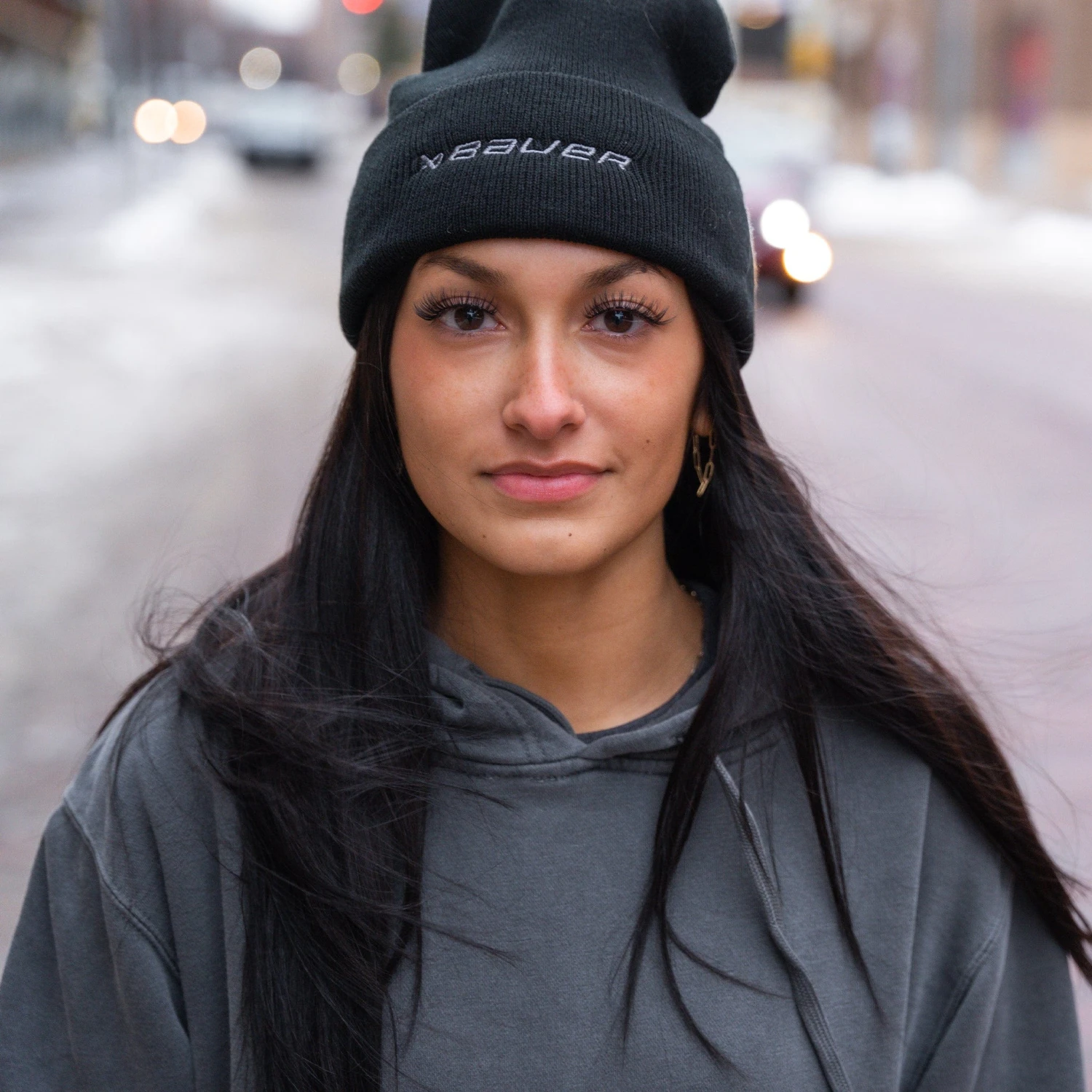 100% acrylic black toque with 12” knit and adjustable cuff. One size fits most. Embroidered Bauer logo/icon lockup.