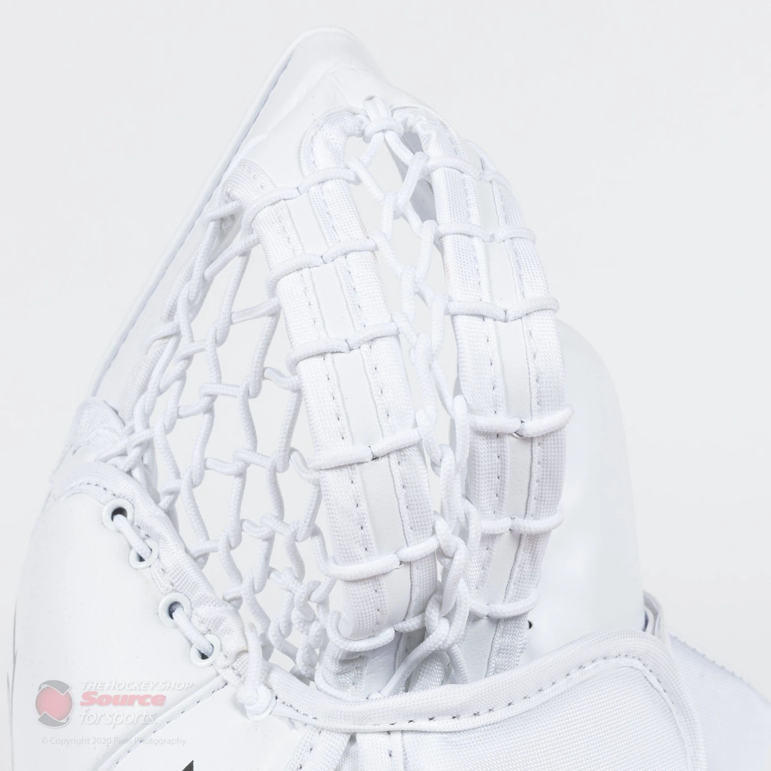 The pocket features the double “T” introduced in the 2S Pro trapper. The benefits of the double “T” include a wider pocket opening and improved puck tracking when looking through the pocket when freezing the puck.
