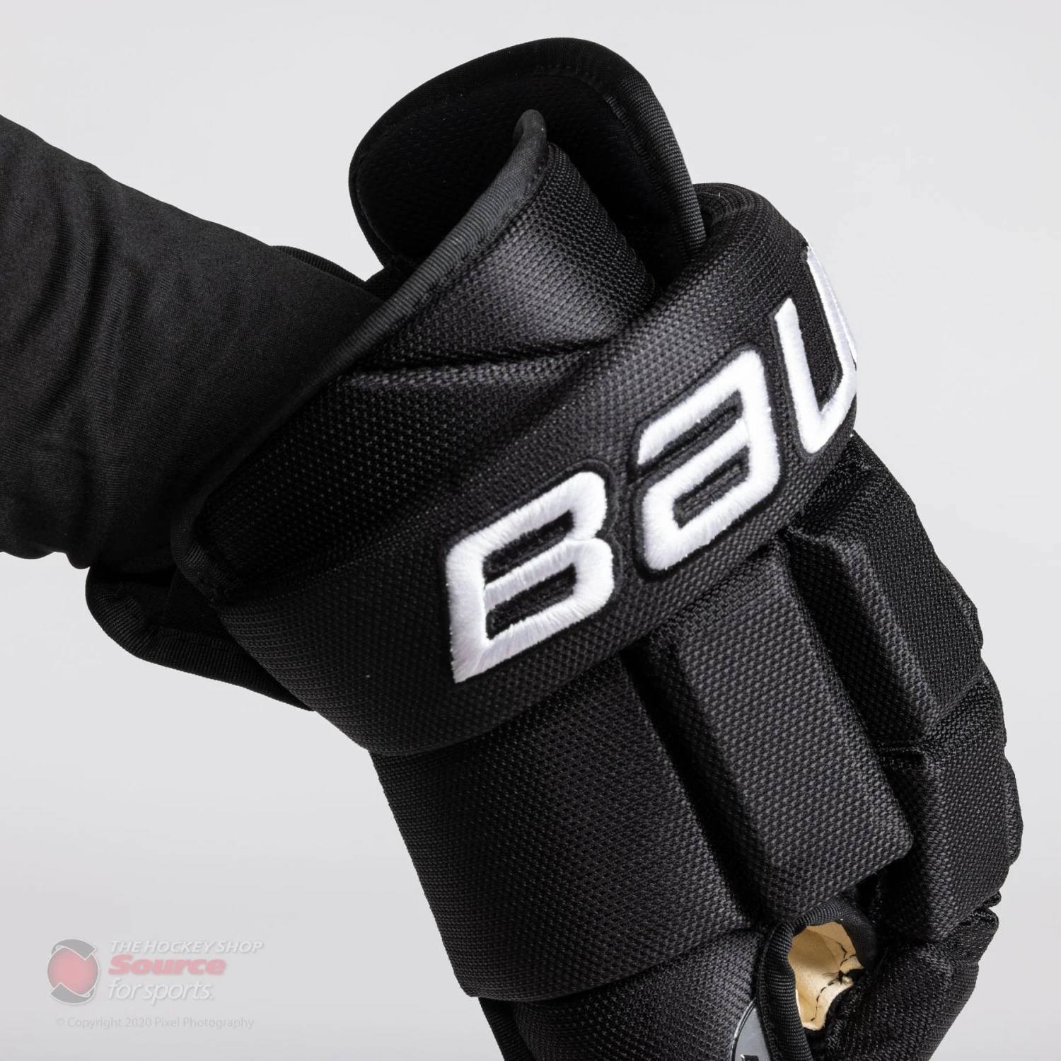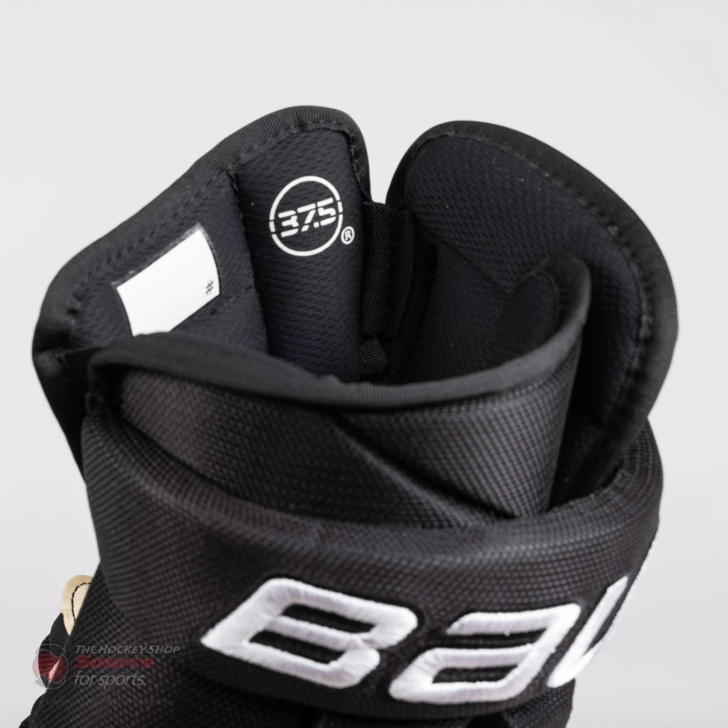 The Nexus Team Pro SR Hockey Gloves from Bauer are a Pro Style offering, similar to a Pro Stock glove. The glove itself is a volume fit, which is a wider fit through the cuff and fingers. Dual Density foams and PE inserts throughout the backrolls and fingers. Other features include 2-Piece Flex Lock Thumb and a Thermo Max liner.