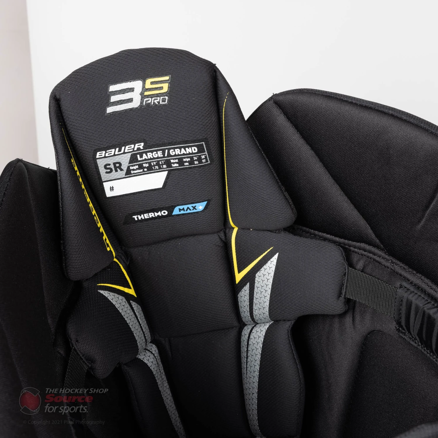 The Bauer 3S Pro pant uses an independent spine protection piece which moves with the body during play and adds Vented Armour Foam. This is a protective and reliable material that keeps the lower spine protected from any unwanted contact.