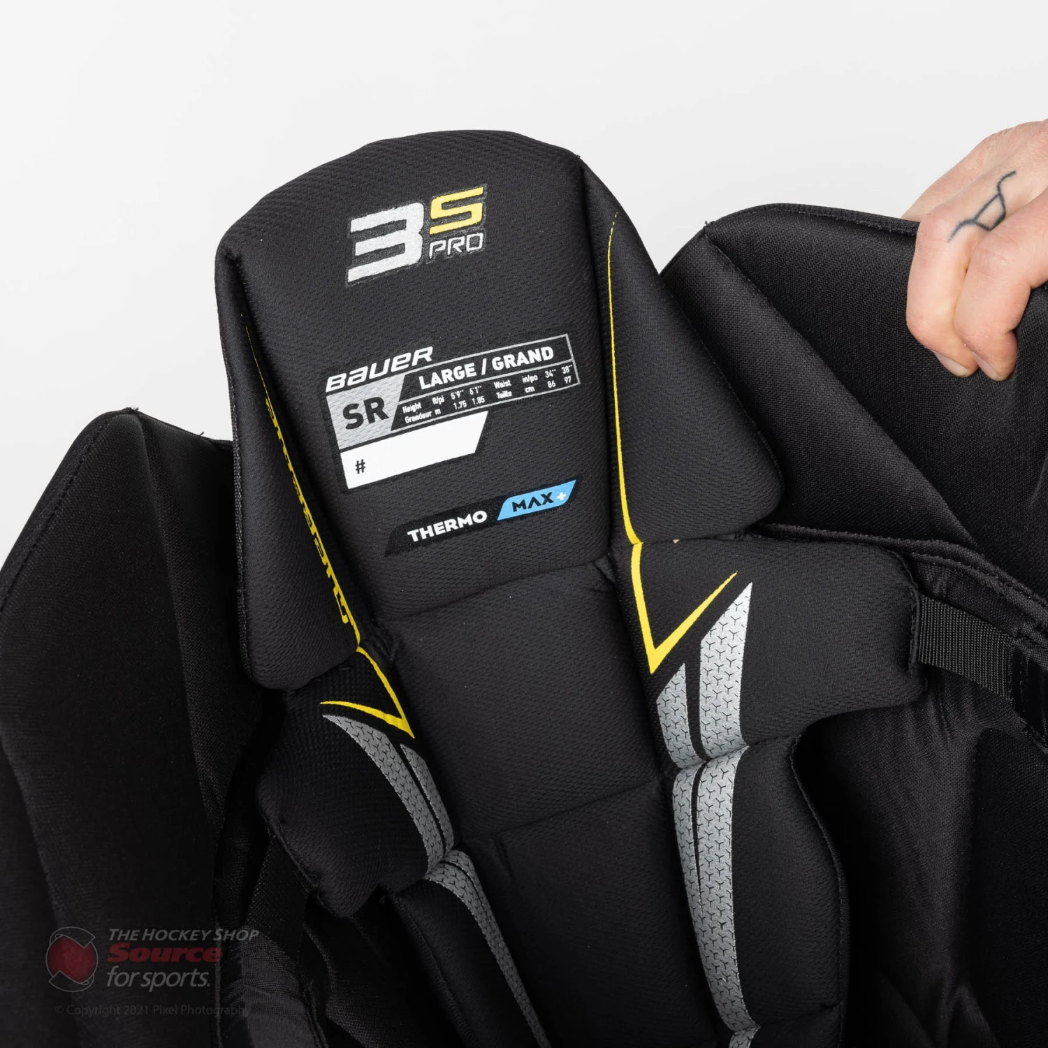 Internally, the Bauer 3S Pros are lined with Bauer’s Thermomax+ liner which excels in managing sweat, moisture, and odor. They also feature an enclosed zipper opening that can be used if the player prefers a looser fit in the thighs. These also make it easier to put the pants on for those that choose to put their skates on before their pants when getting dressed – just don’t forget skate guards!