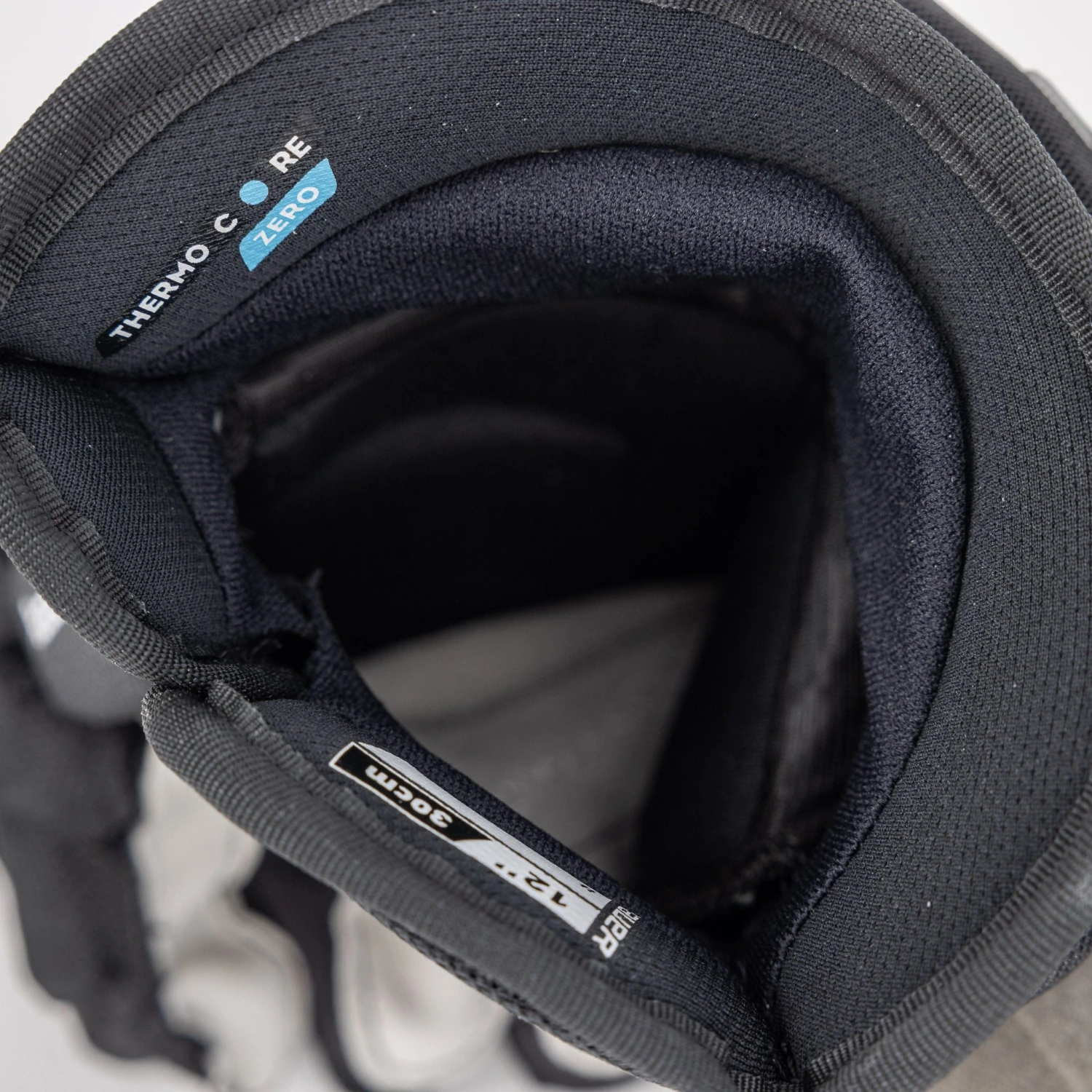 The Bauer Mach hockey gloves are equipped with a Hyper Sense finger liner, providing a comfortable and lightweight feel. This liner offers a nice, natural sensation, allowing players to stay focused on the game without distraction. The gloves also feature a Thermocore Zero backhand pad, which is an incorporated specially treated yarn treatment that efficiently manages sweat and odour.