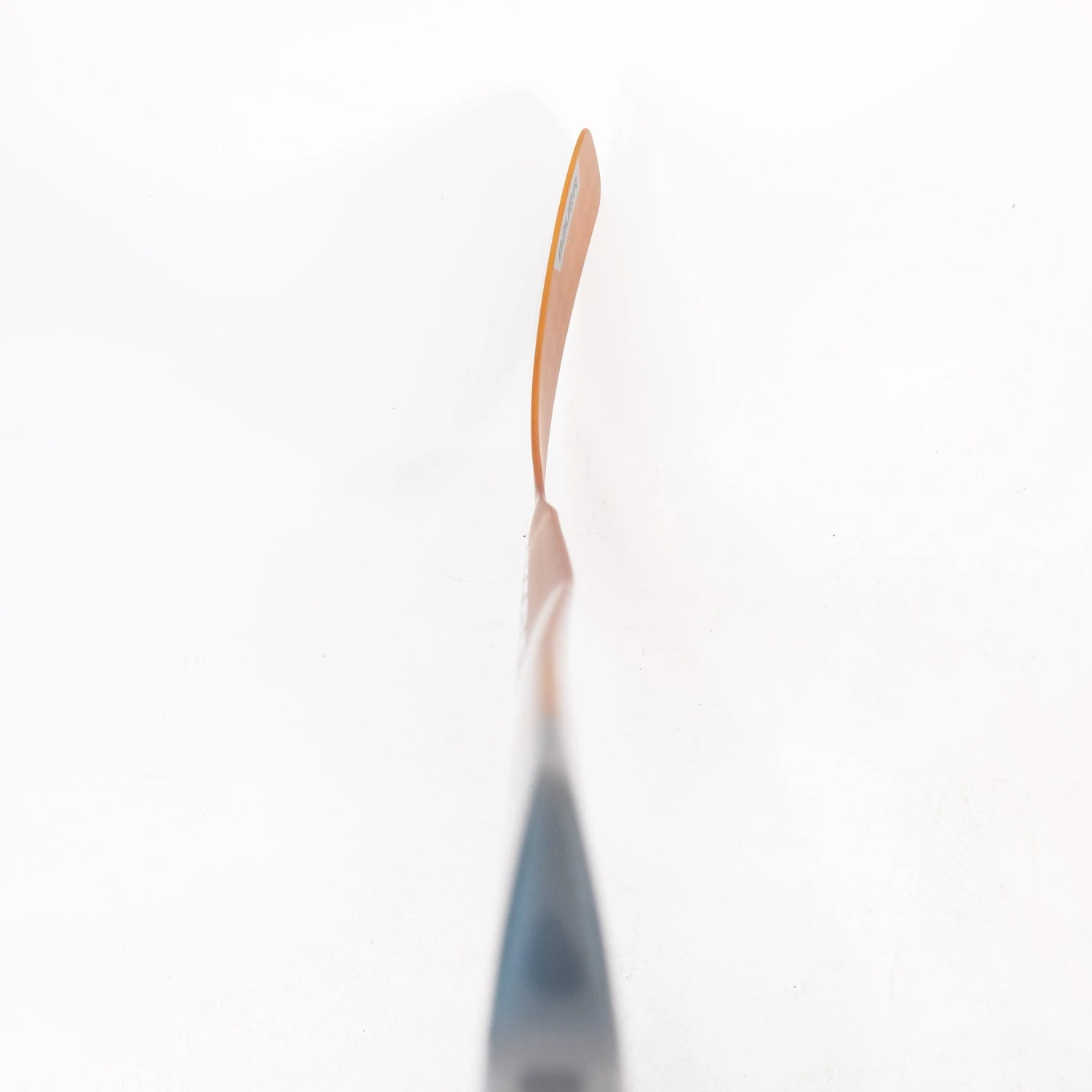 This custom Bauer Supreme 3s Pro goal stick is a pro return from NHL goalie Anton Forsberg. It has been outfitted with a Supreme 3s Pro graphic over a Supreme 2S Lite construction. Pro stock goalie sticks possess curves for the goalie they were designed for; the Forsberg curve is similar to a Bauer P20 curve with a square toe.