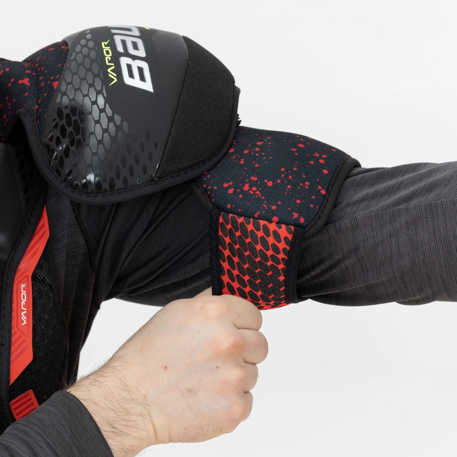 The Vapor line is all about speed and maneuverability. As such, the bicep on the 3X is adjustable and made with molded PE inserts for a closer and more lightweight fit. PE shields are a traditionally reliable option for optimal lightweight protection, which is a main reason why they were used here in Bauer’s competitive-level shoulder pad.