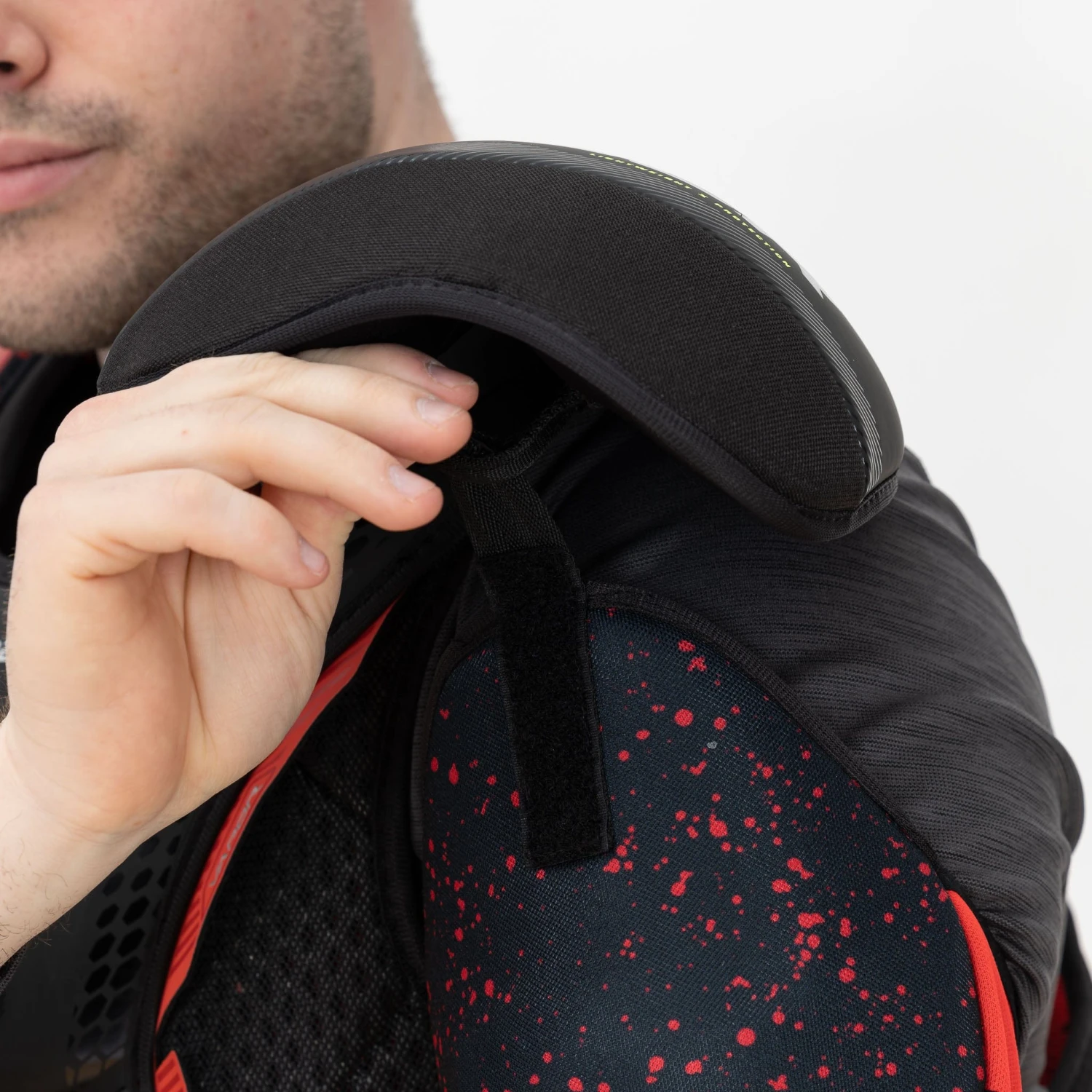 The Vapor 3X shoulder pads are equipped with a removable abdominal protection piece for added protection in that sensitive area.