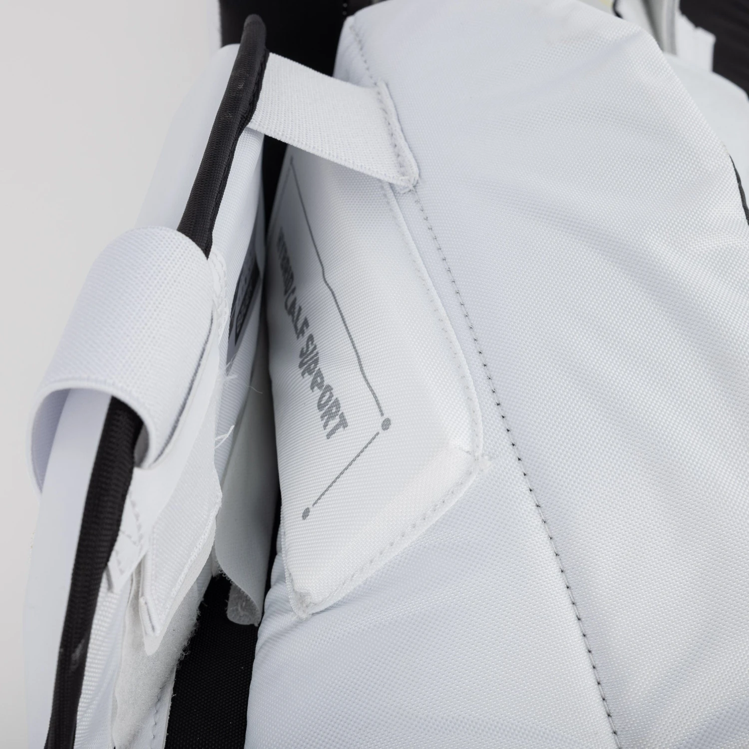 Bauer continues to use tried and true TuneFit strappings on the Hyperlite series of leg pads. The strapping system consists of a series of adjustable straps and fasteners that can be configured to achieve the desired level of support, mobility, and comfort. The X5 also includes a new lower calf strap for better leg connectivity.