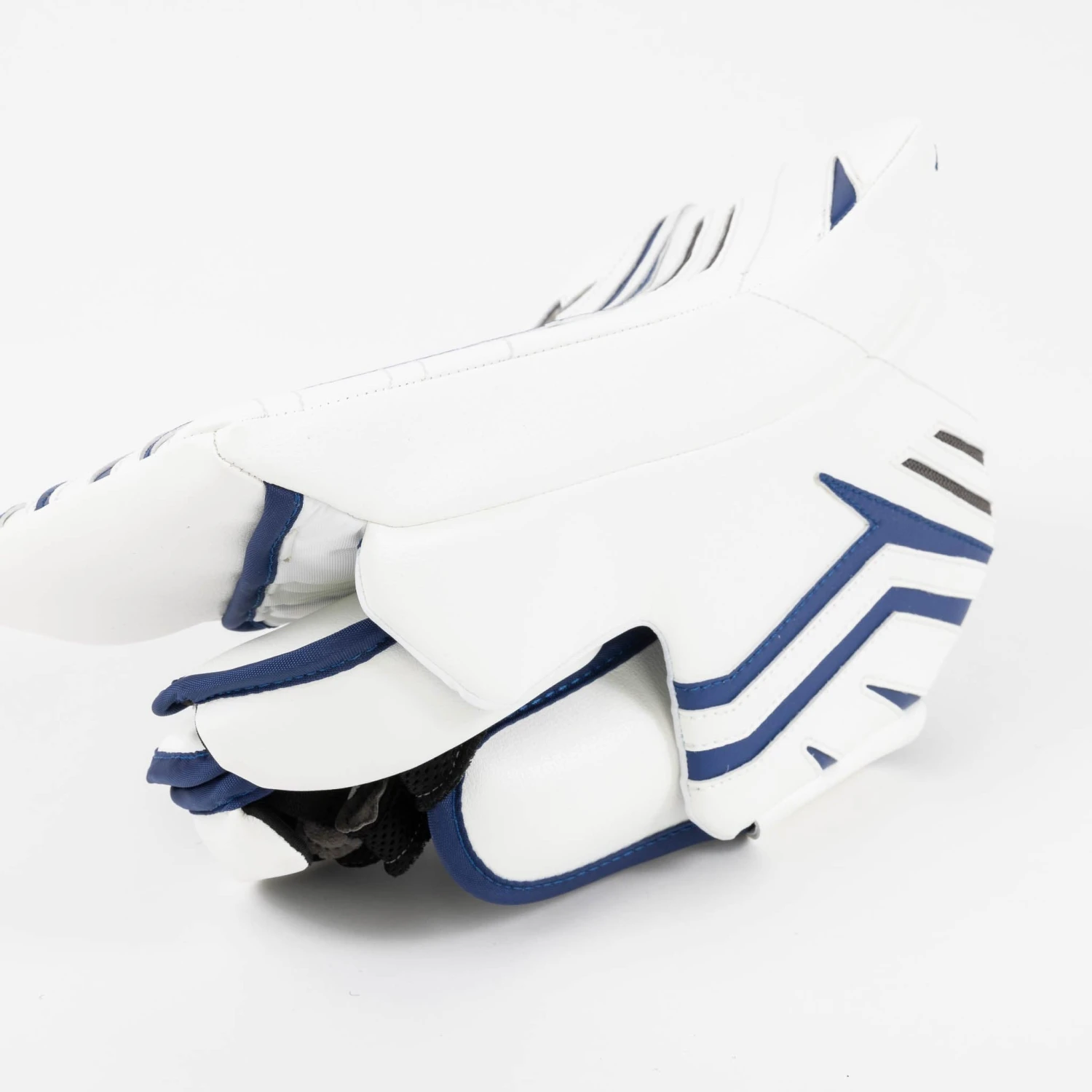 The blocker uses a laced-in, HD foam sidewall for solid protection coupled with an elite look. The overall framework helps eliminate gaps while keeping an adequate stiffness for stopping the puck. The sidewall is also equipped with an adjustable velcro anchor strap for enhanced sidewall stability.