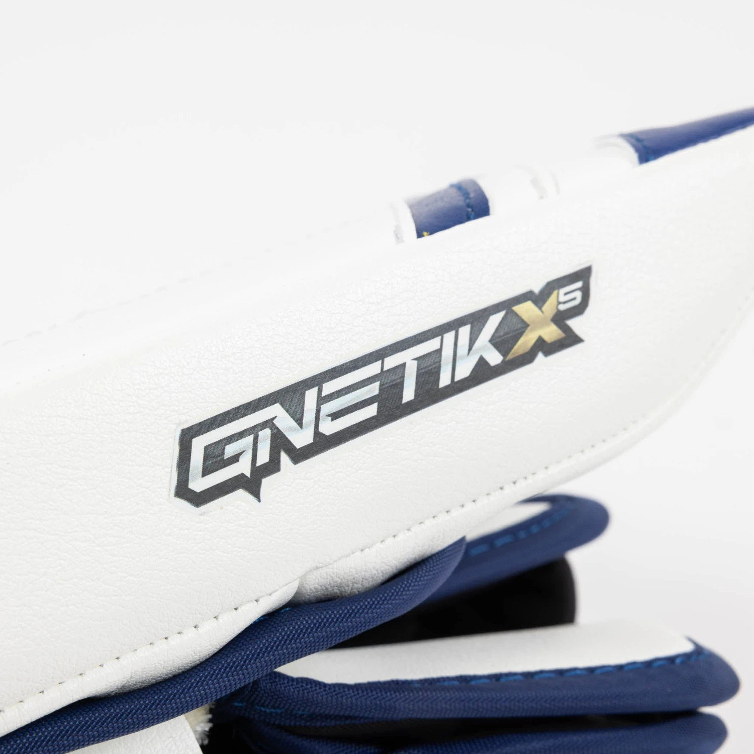 The Brian’s G-NETik X5 Junior Goalie Blocker comes in Regular and Full Right configurations, and the following colourways: White, White/Black, White/Black/Red, White/Blue, and White/Red.