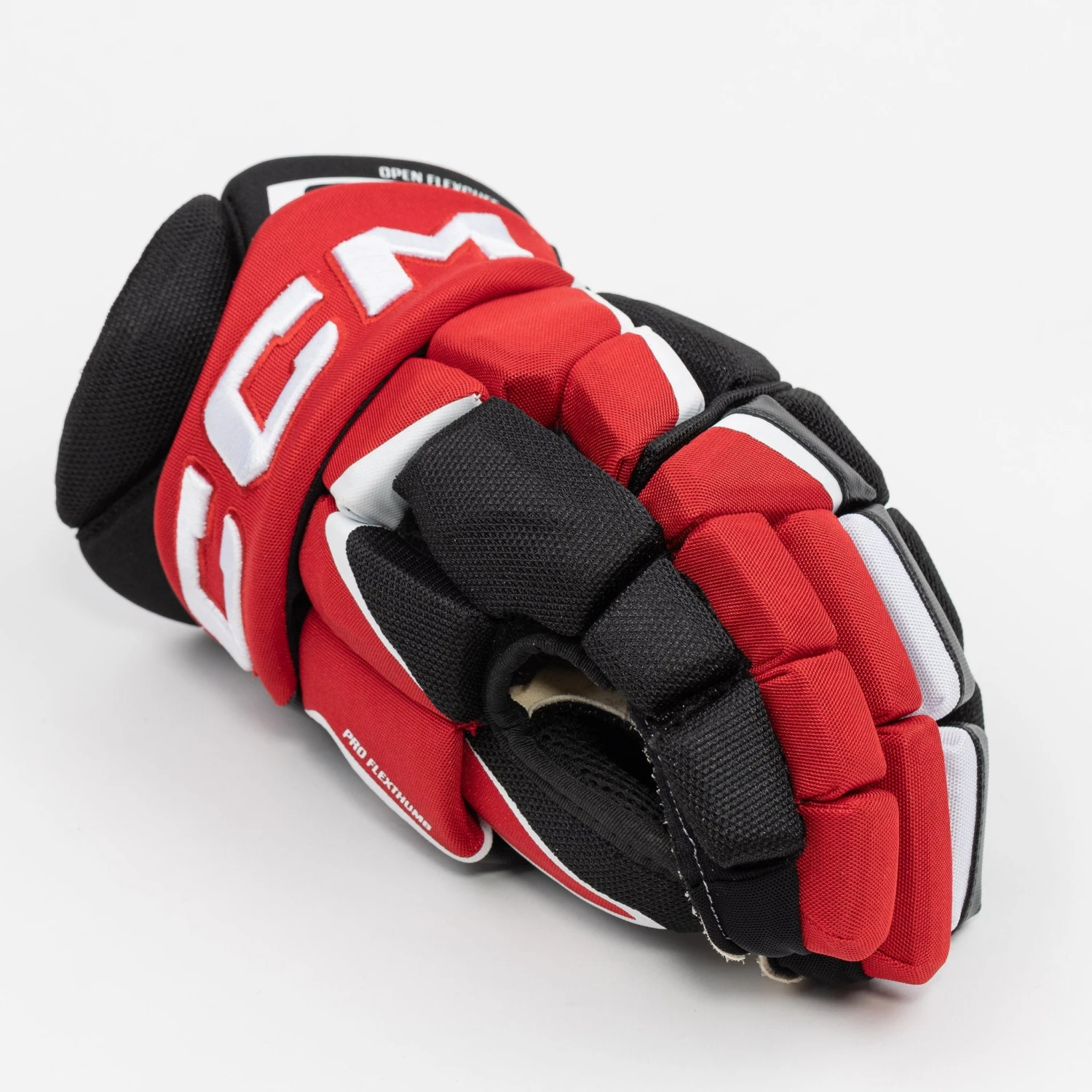Introducing the Jetspeed FT6 Pro hockey gloves—the latest addition to the CCM lineup. These gloves are designed to provide an elite combination of protection, comfort, and ventilation, with some brand-new features to take your game to the next level. These gloves feature and introduce many of CCM’s most advanced features, including an Aer-Tec Thermoregulation and Suspension System, a new Sensalast Pro Palm, Premium ZoteFoam, and a Pro Flexthumb.