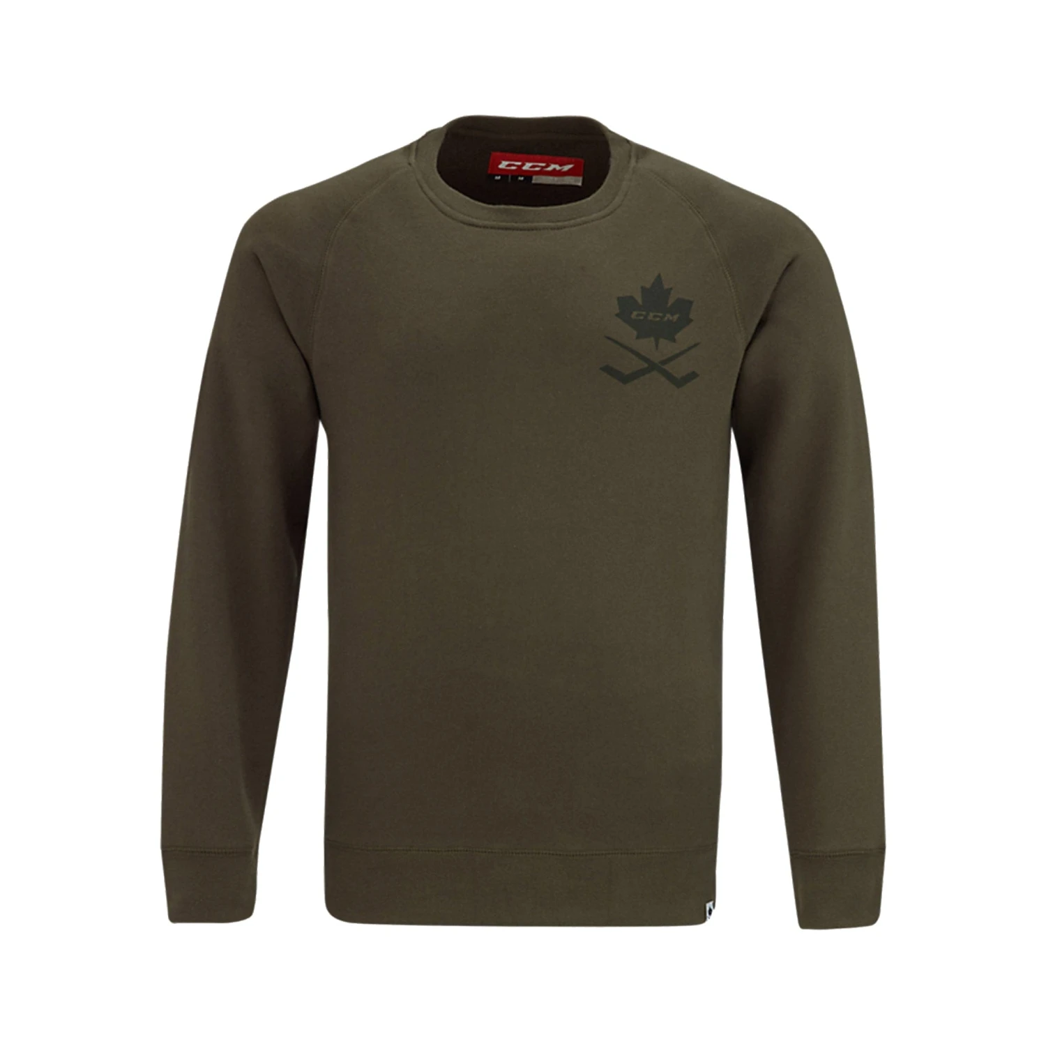 Opt for this clean and classic long-sleeved CCM crewneck sweatshirt. With its ribbed cuffs and waistband, this fleece crew offers an extremely comfortable fit with a tone on tone embroidered logo detailing.