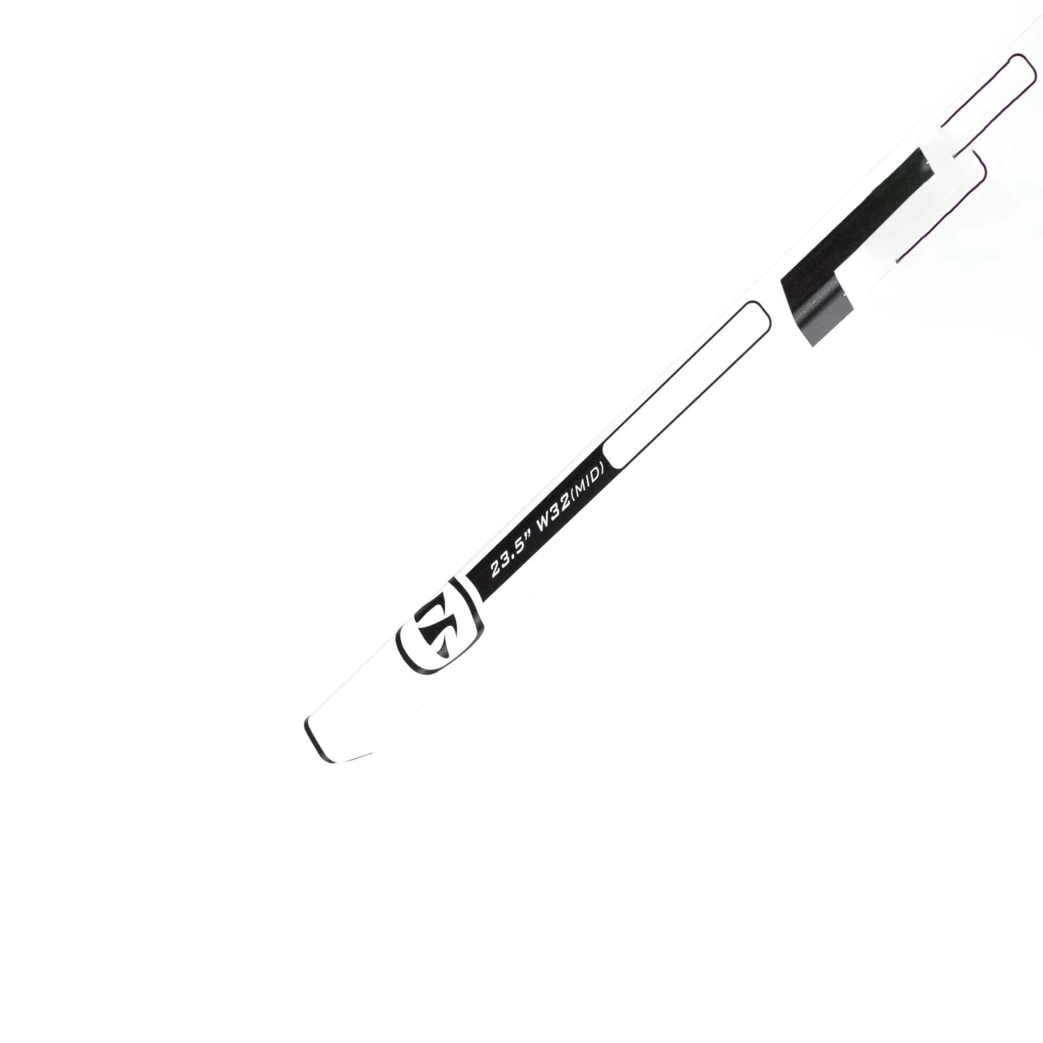 The Warrior M1 SR+ goalie stick comes in one colourway of white and black while also featuring a pop of colour with a blue, green, and yellow graphic on the upper paddle. The whole stick is polished off with a matte finish.
